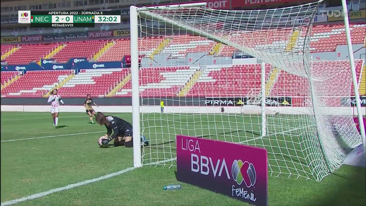 La delantera de las felinas remató al centro de la portería luego de un muy buen pivoteo de Stephanie Ribeiro.