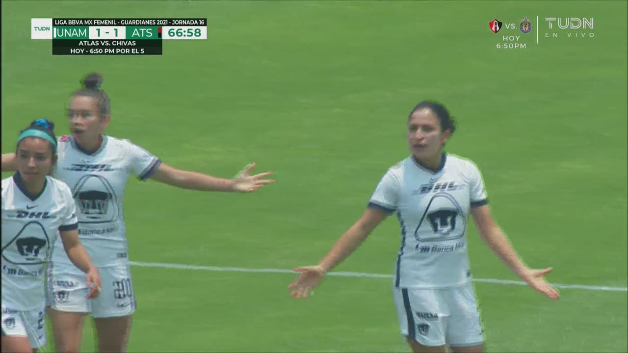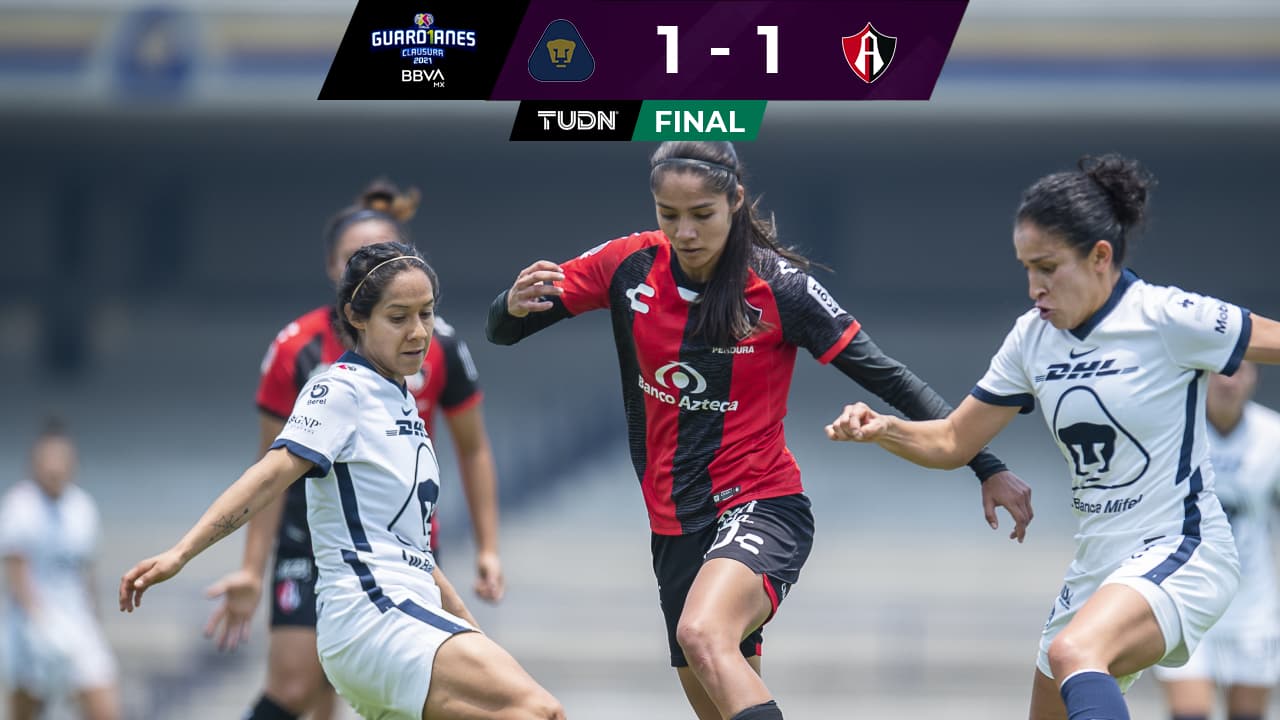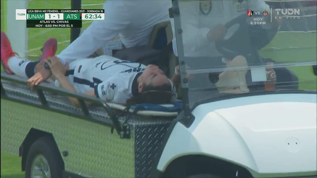 Pumas dejó escapar la victoria e igualó 1-1 en el Estadio Olímpico Universitario ante Atlas en la Jornada 16 del Guard1anes 2021 BBVA MX Femenil, en un duelo muy accidentado que culminó con dos jugadores locales con posible fractura.