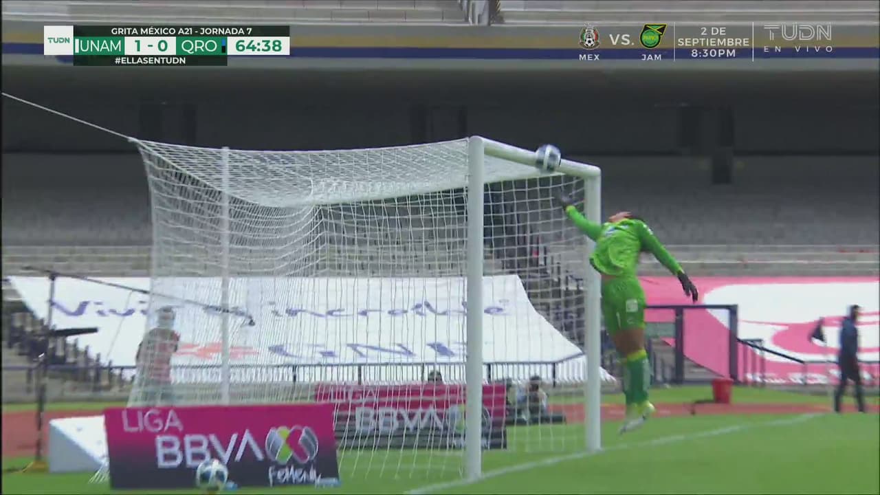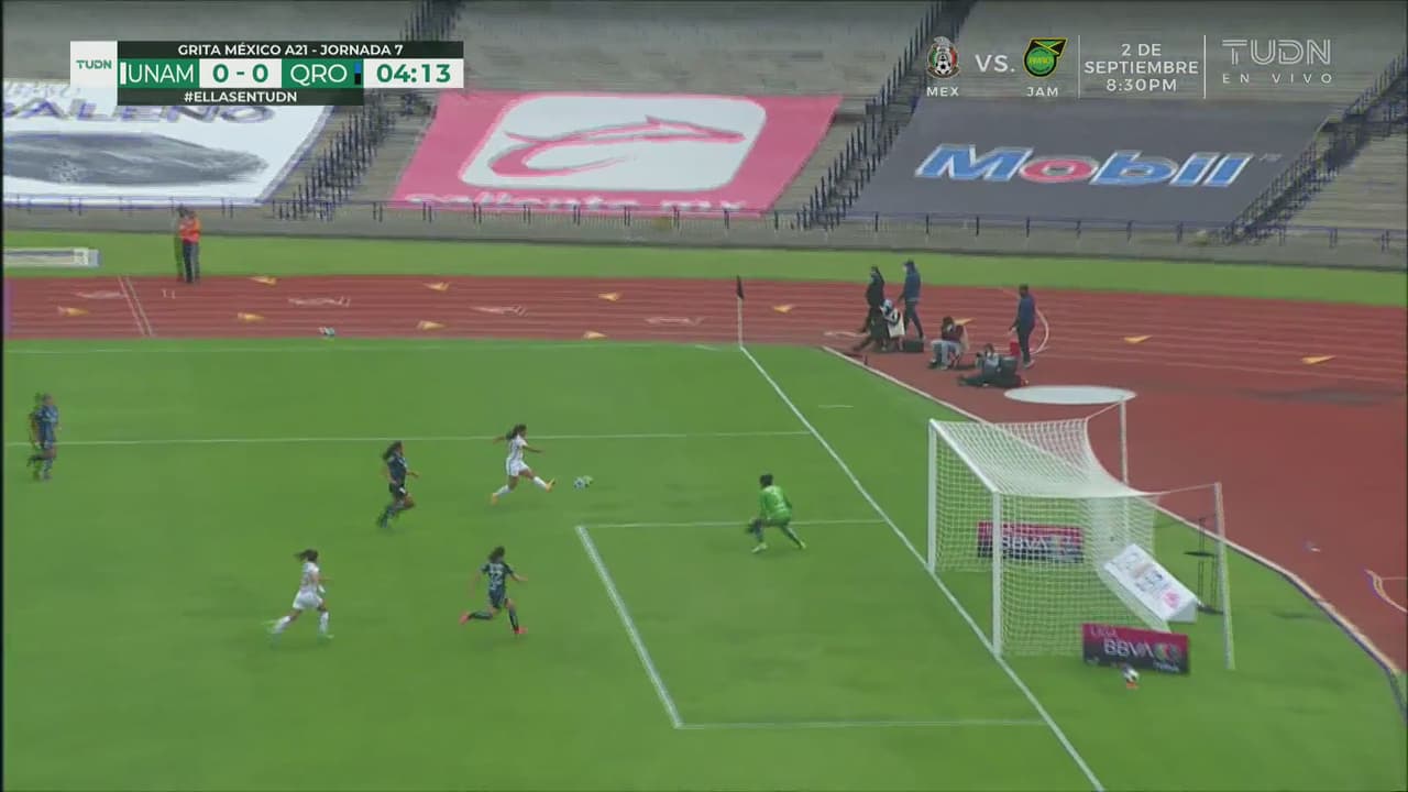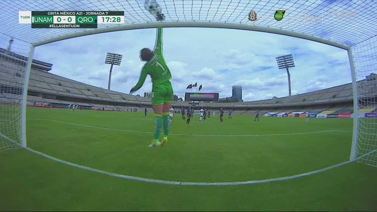 La intensidad de Pumas conviritió en un infierno el partido para las queretanas, que no encontraban cómo detener los embates, así que apelaron a las acciones individuales de la portera Córdoba, que sacó un remate en espectacular vuelo.