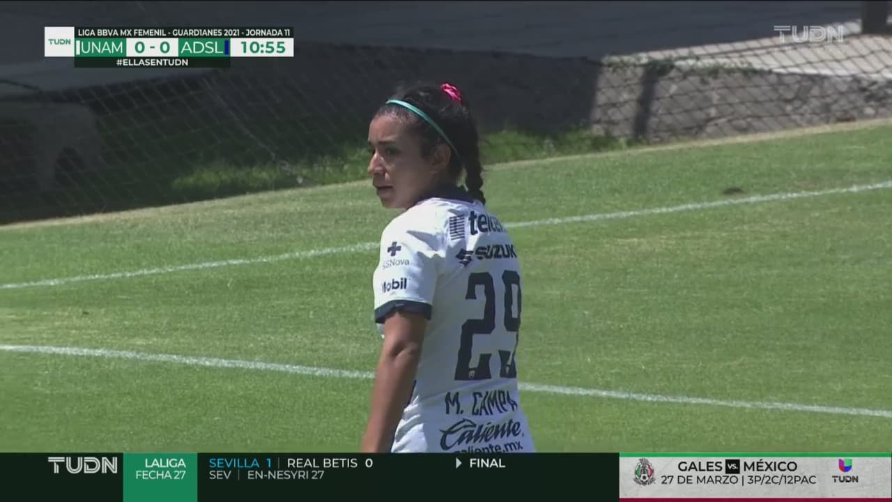 ¡Pumas cerca del gol! Cabezazo de Marlyn Campa que pasa rozando