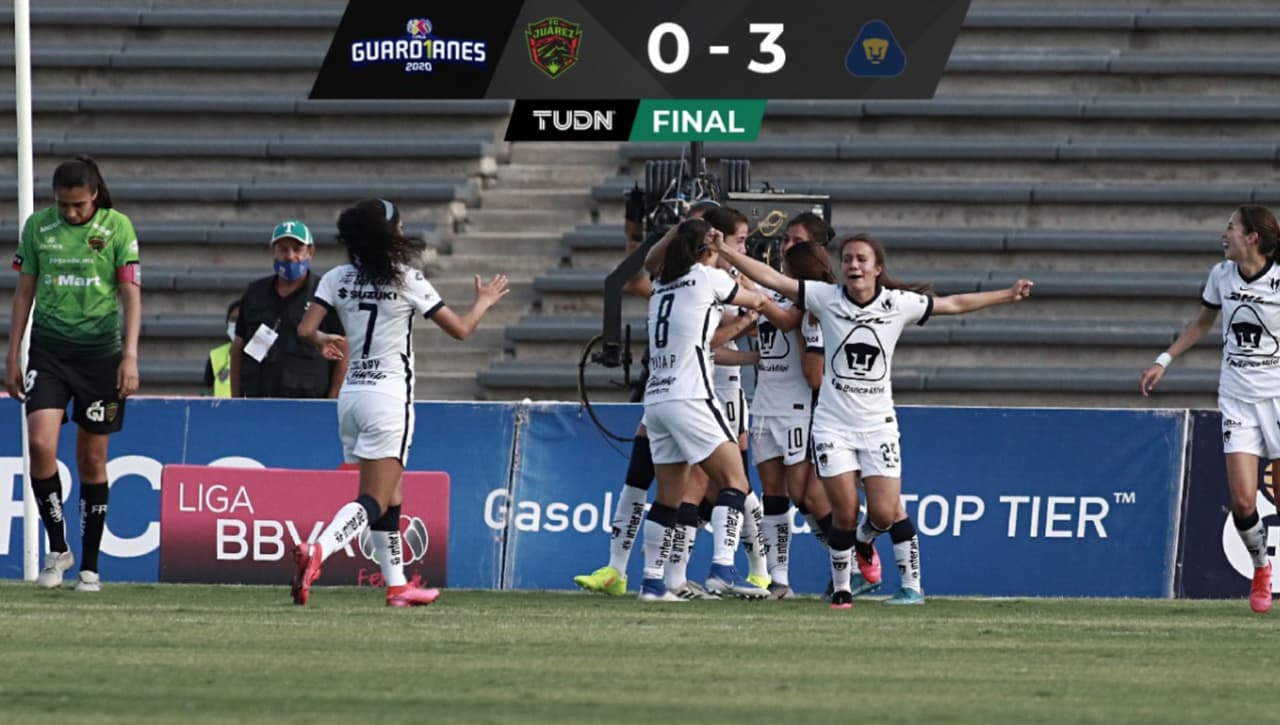 Pumas de la UNAM consiguió su primer triunfo en el Guard1anes 2020 dentro de la Liga MX Femenil al vencer por 3-0 a Juárez en la Jornada 3.