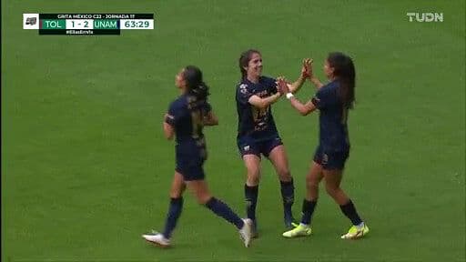 La portera de Toluca desvió el balón y Mariel no pudo reaccionar para evitar el contacto con el balón al 62’.