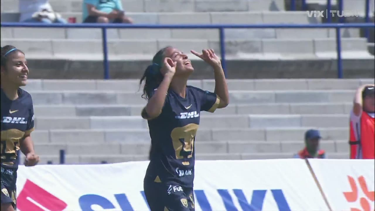 Parecía que el conjunto fronterizo se llevaba un triunfo agónico de C.U., pero en la siguiente jugada Pumas rescató el empate con un remate de Anahí Gómez dentro del área que se colgó en el ángulo y dejó parada a González.