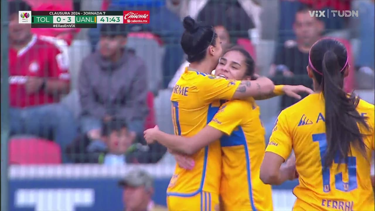 Jugada que tejen las regias, donde Hermoso le cede la de gajos a Maricarmen que no se tentó el corazón y le pegó a portería.