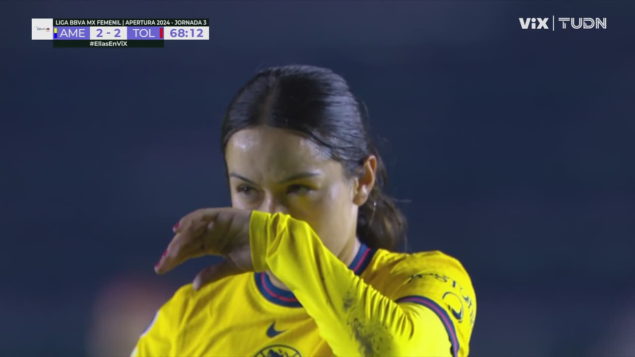 Buena recepción de un trazo largo de cara a la meta, enganchando bien la bola pero Scarlett se complica al momento de querer rematar a gol.