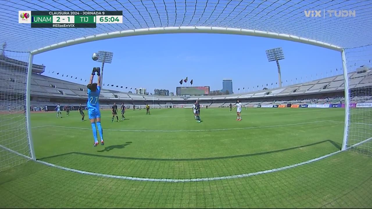 Bibiana Quintos había enviado un buen centro que cede a la panameña con remate pero Heidi González se estira y mete el guantazo.