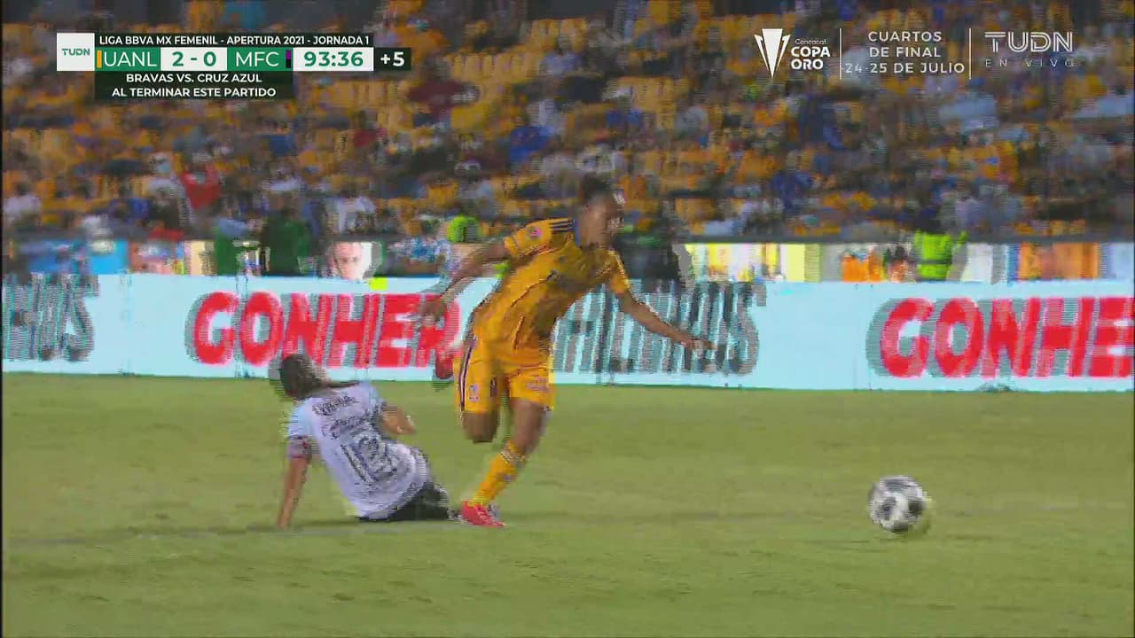 La delantera dejó atrás a sus marcadoras y picó el esférico, pero Michell alejó el peligro al 93’.