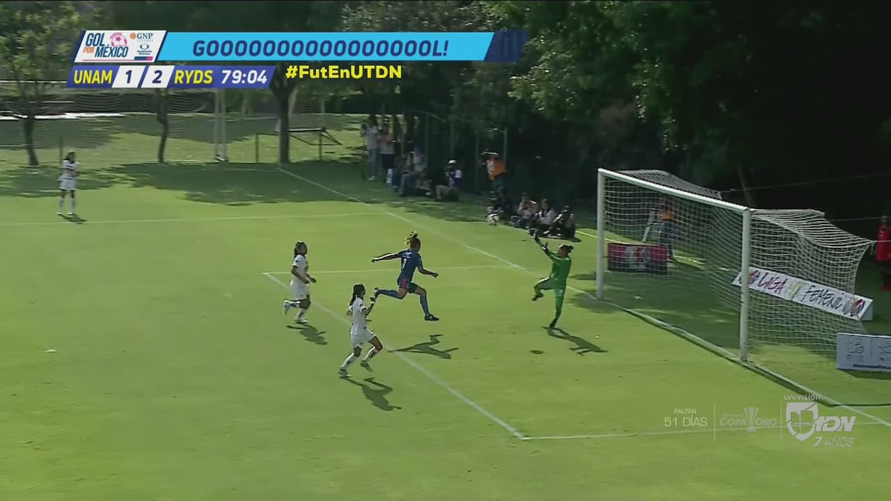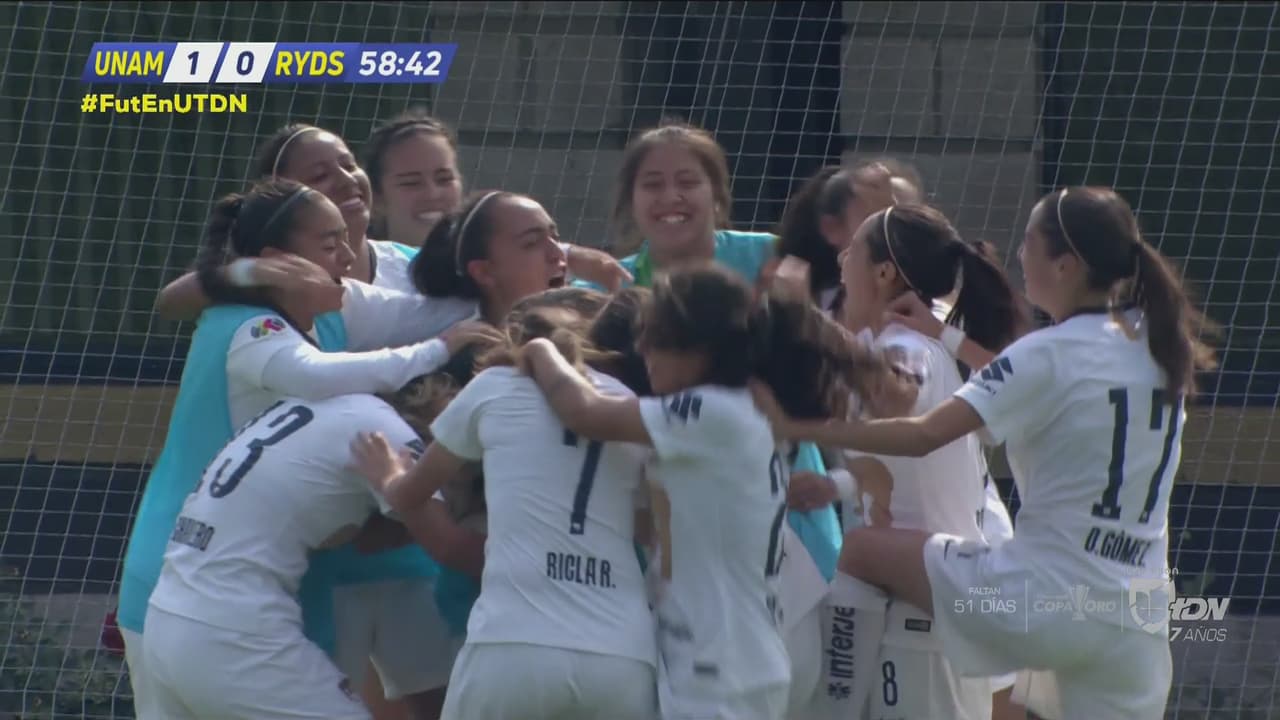 Primero, Edna Santamaría aprovechó la mala salida de la portera para puntearle el balón y definir dentro del área con un derechazo certero, era el minuto 58 y Pumas tomó la ventaja.