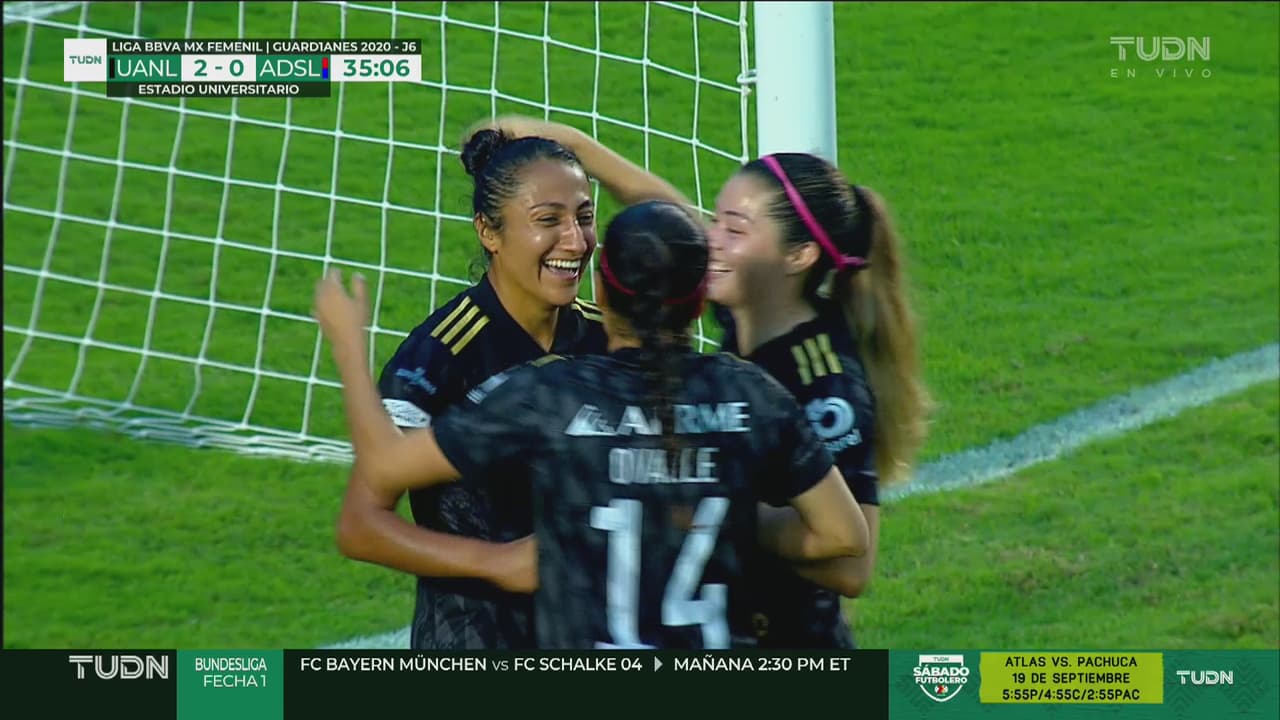 La número 9 de las felinas se topó con suerte, luego de un centre que la defensa del cuadro potosino no supo rechazar.