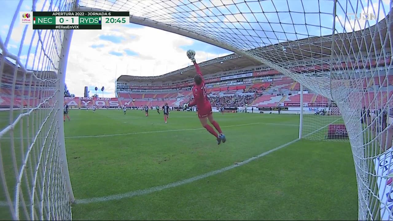 Nikkole se anima y busca sorprender a Alejandra y la guardameta salta para desviar el balón a tiro de esquina.