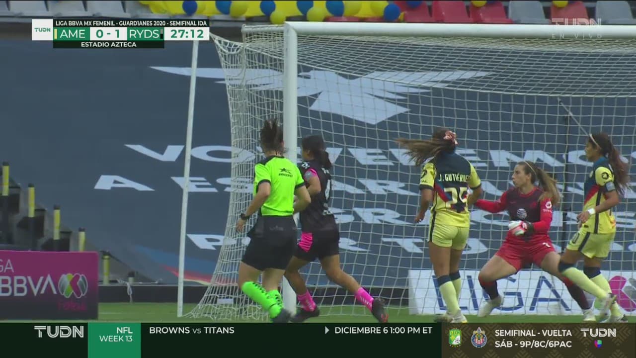 La capitana de Rayadas se quedó a nada del gol con su cabezazo durante un tiro libre al 26’.