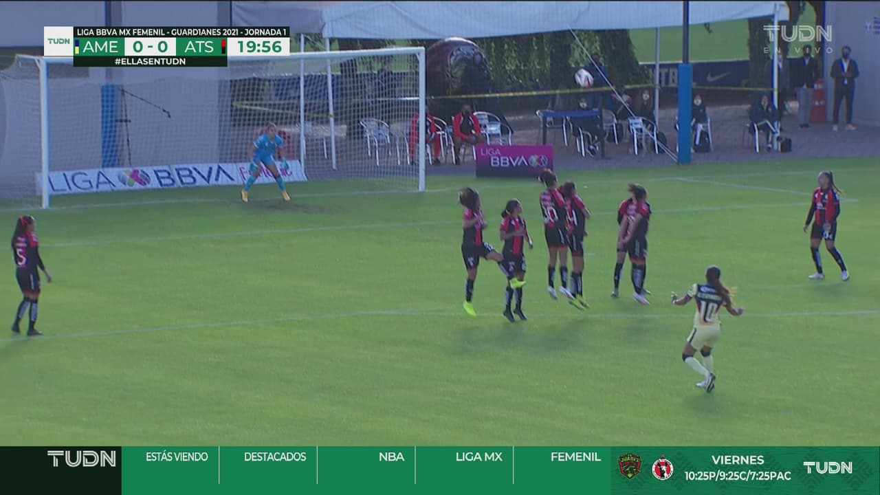 La capitana del América prendió el tiro libre, pero el poste salvó a la portera del Atlas al 19’.