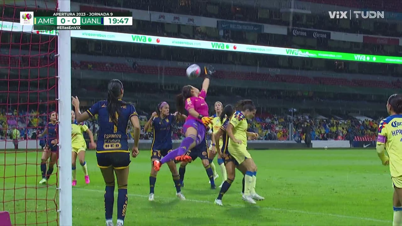 La portera azulcrema falló buscando el balón en un tiro de esquina y para su suerte la defensa alejó el peligro de su meta.