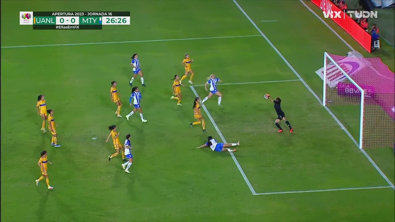 La guardameta de las universitarias de nuevo se lució con una volada para no permitir que ni Dania ni Bernal anotaran.
