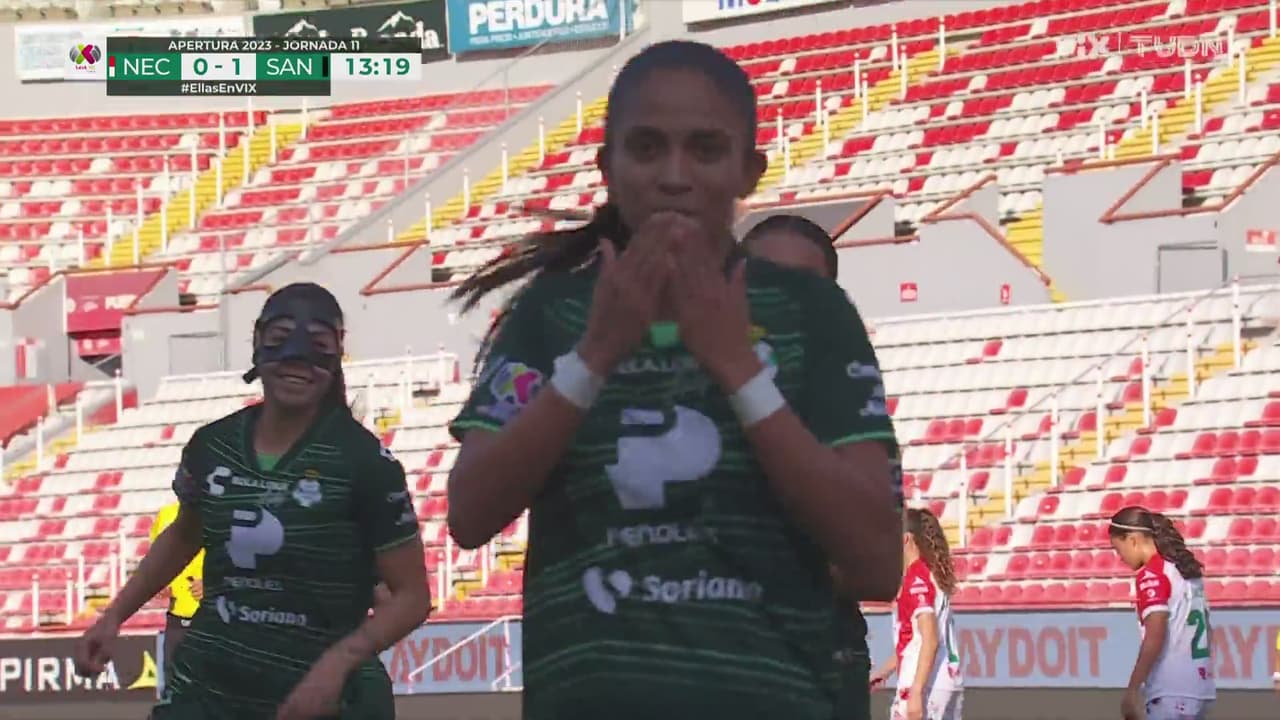 El tiro libre pegó en el horizontal al que le mete la mano Brissa Rangel y al momento de quedar el balón a la deriva, apareció la de Santos para anotar.
