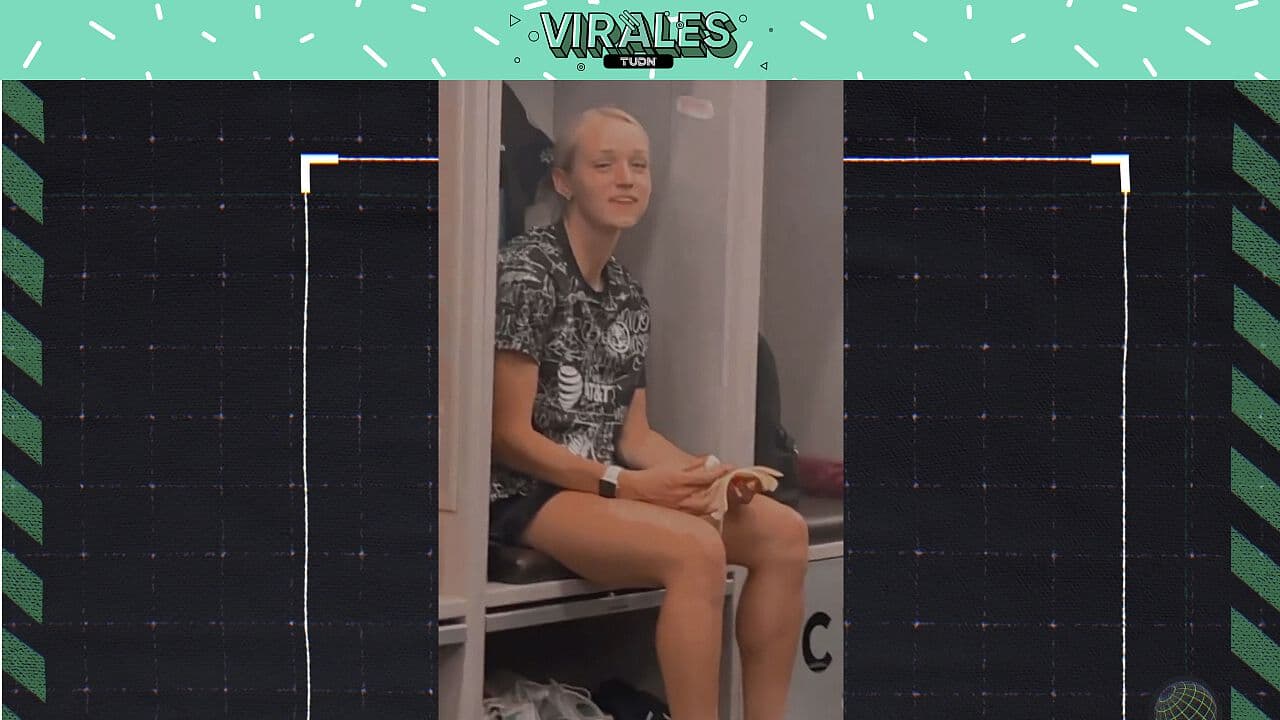 La estadounidense fue sorprendida en el vestidor de las Águilas mientras cantaba música de banda y cuando se percató que era grabada se sonrojó y retiró.