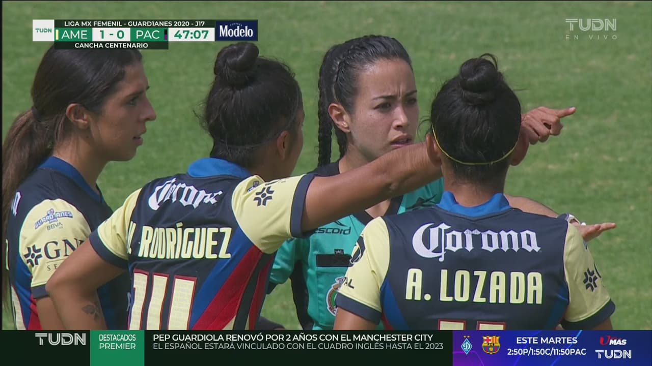 Señalan que empujó el balón en fuera de lugar y América Femenil no puede tomar la ventaja al 46'.