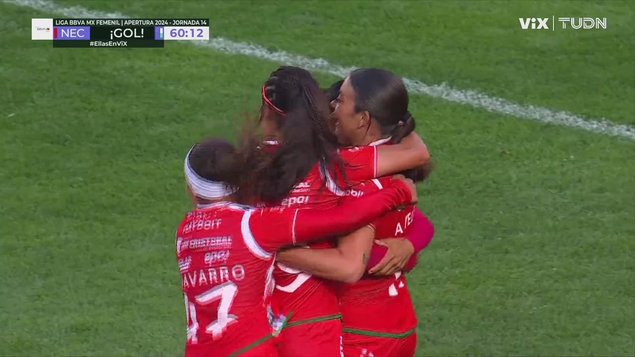 Pelotazo largo que aprovecha la dorsal 17 de las de Necaxa, con colaboración de Hannia de Ávila al tener un grave error al momento de querer atajar.
