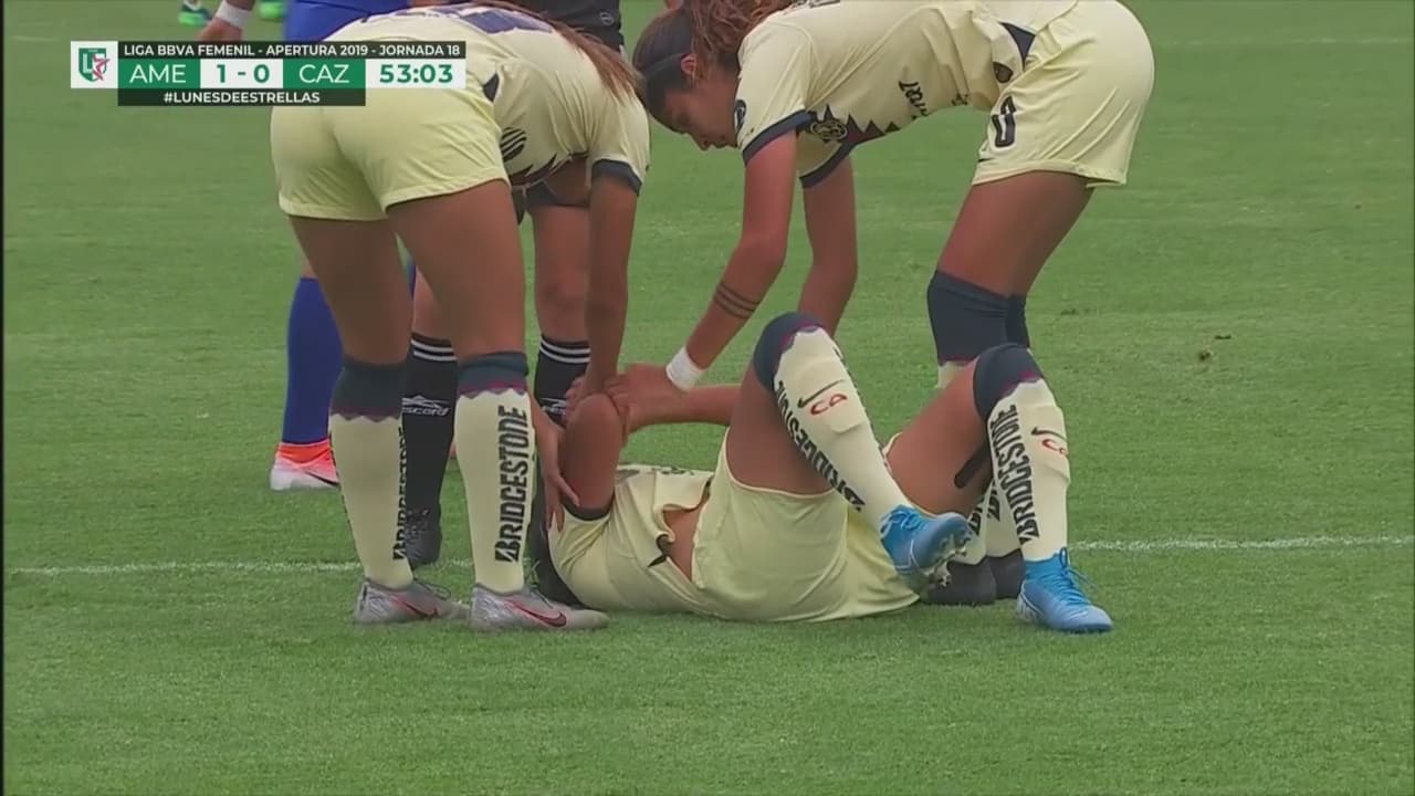 La atacante se dobló el tobillo cuando buscaba un recorte para evitar la barrida de Brenda García.
