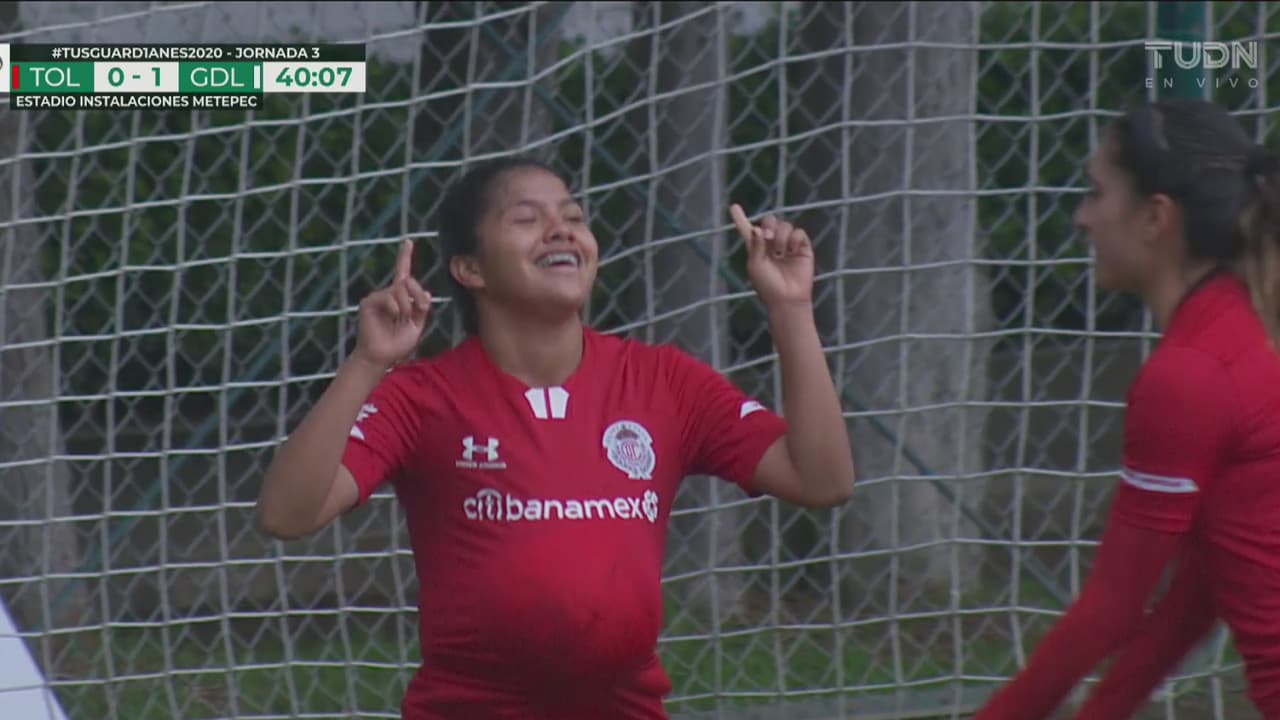 En jugada iniciada con un tiro de esquina llegó el empate de Toluca, el balón nunca toca el suelo, al 40’.