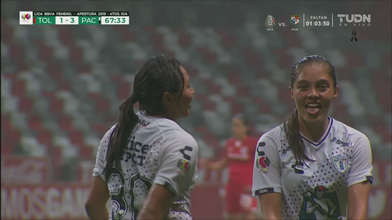 La jugadora de Pachuca mandó un centro venenoso que nadie tocó y el esférico acabó en el fondo.