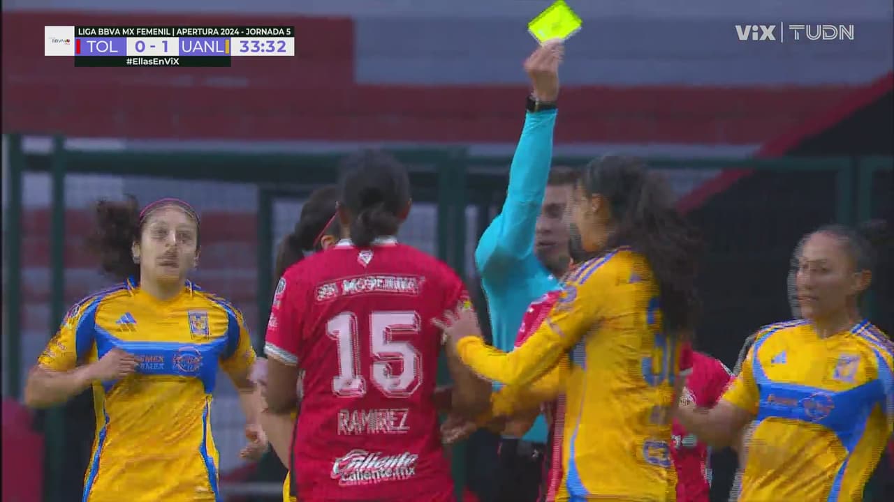 La jugadora de Toluca tiró a la Maga, quien se levantó caliente a reclamar y acabó la cosa con amarillas y empujones.