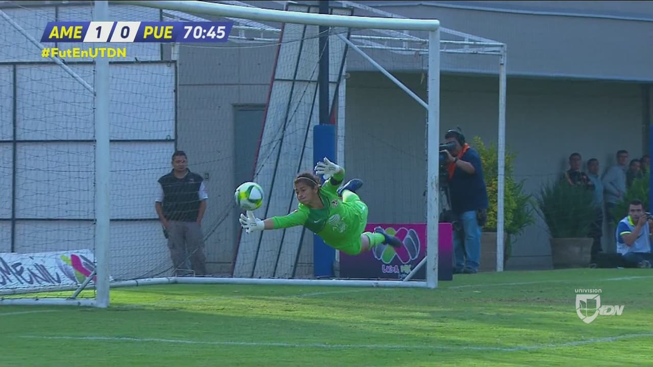La jugadora del Puebla por poco iguala el marcador ante el América gracias a un cobro de pelota quieta que pegó en la base del poste.