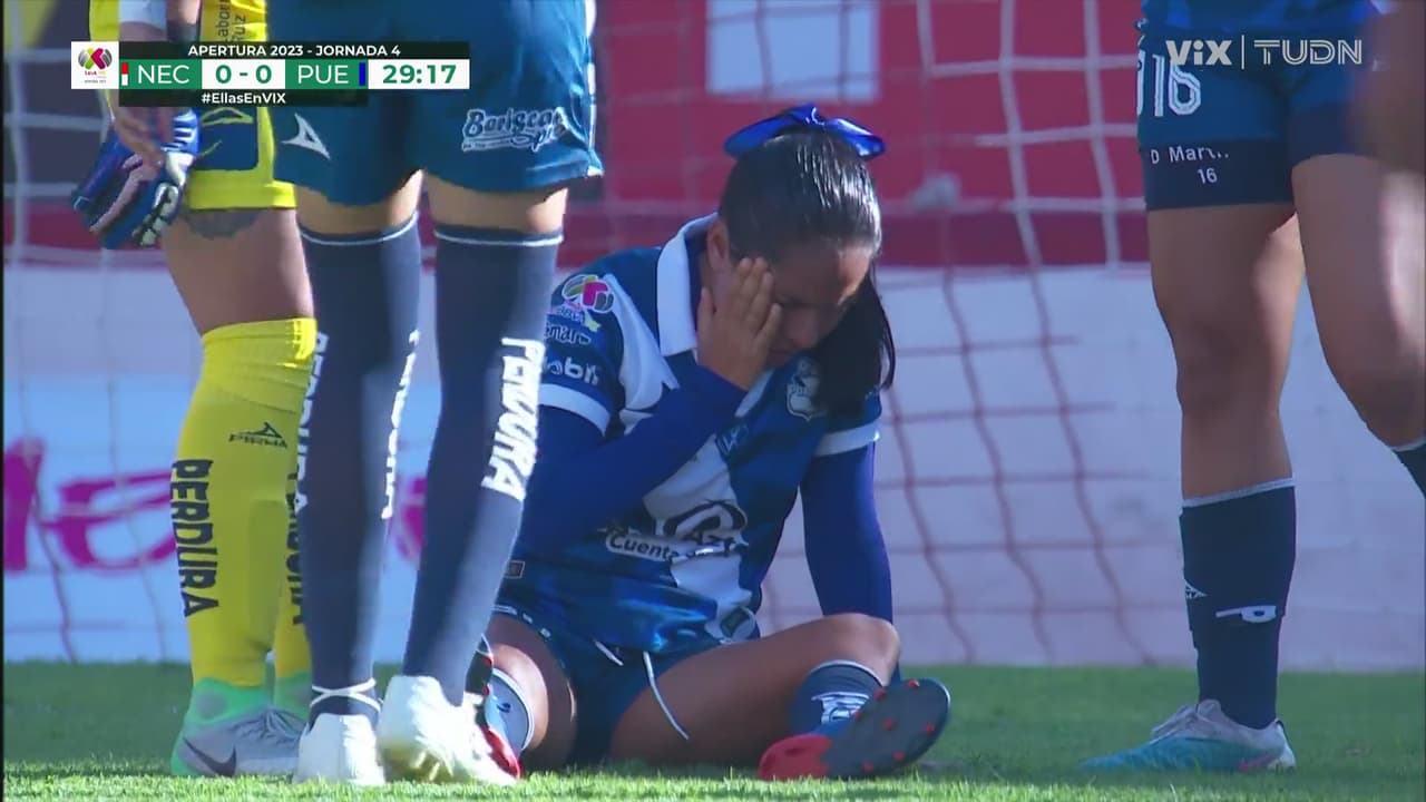 Necaxa buscaba abrir el marcador, pero el centro es un poco justo y termina con encontronazo en el área.