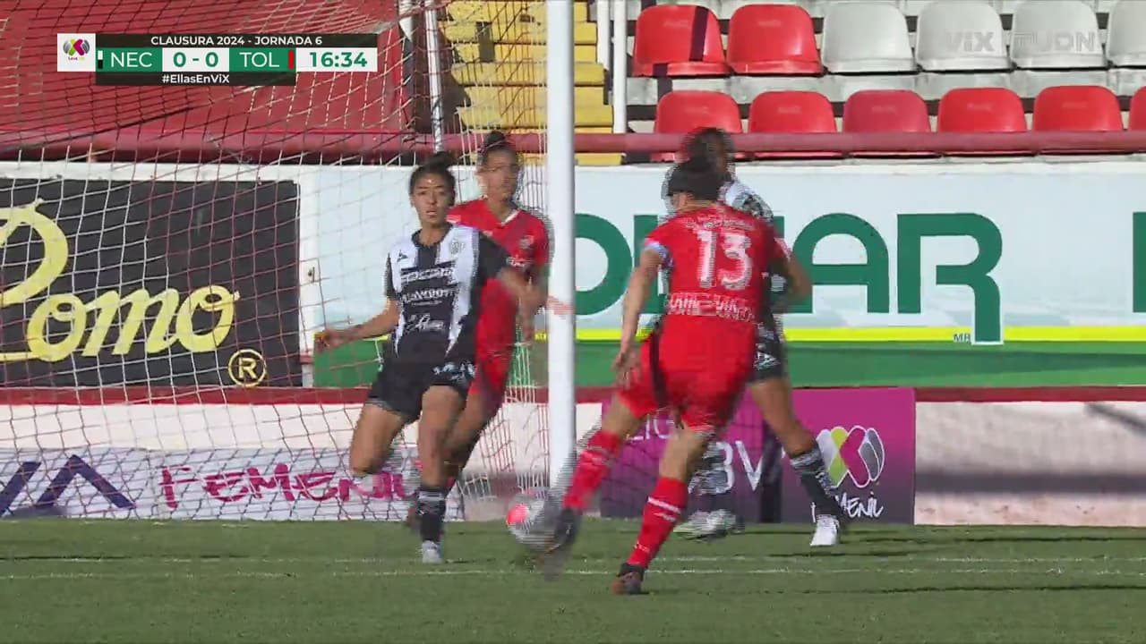 El tiro venenoso de Natalia se fue por encimar del horizontal, dejando ir el primer gol del cotejo.