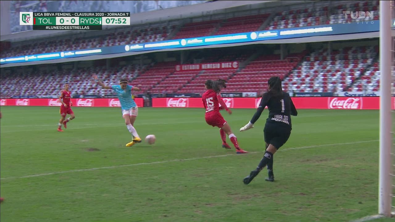 La jugadora de Rayadas estaba casi frente al arco, pero no pudo disparar de buena forma.
