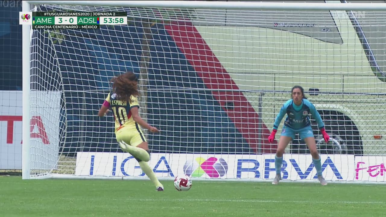 Al 53' se marcó un penal sobre la goleadora Daniela Espinosa y fue ella misma la encargada de convertir el gol, primero con la cinta de capitana. Además se pone a solo 4 goles de la goleadora histórica del club, Lucero Cuevas, ahora con León.