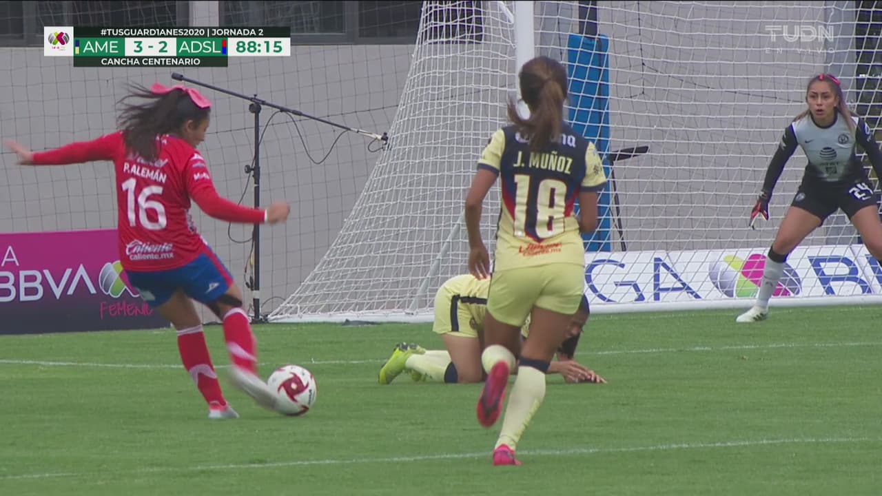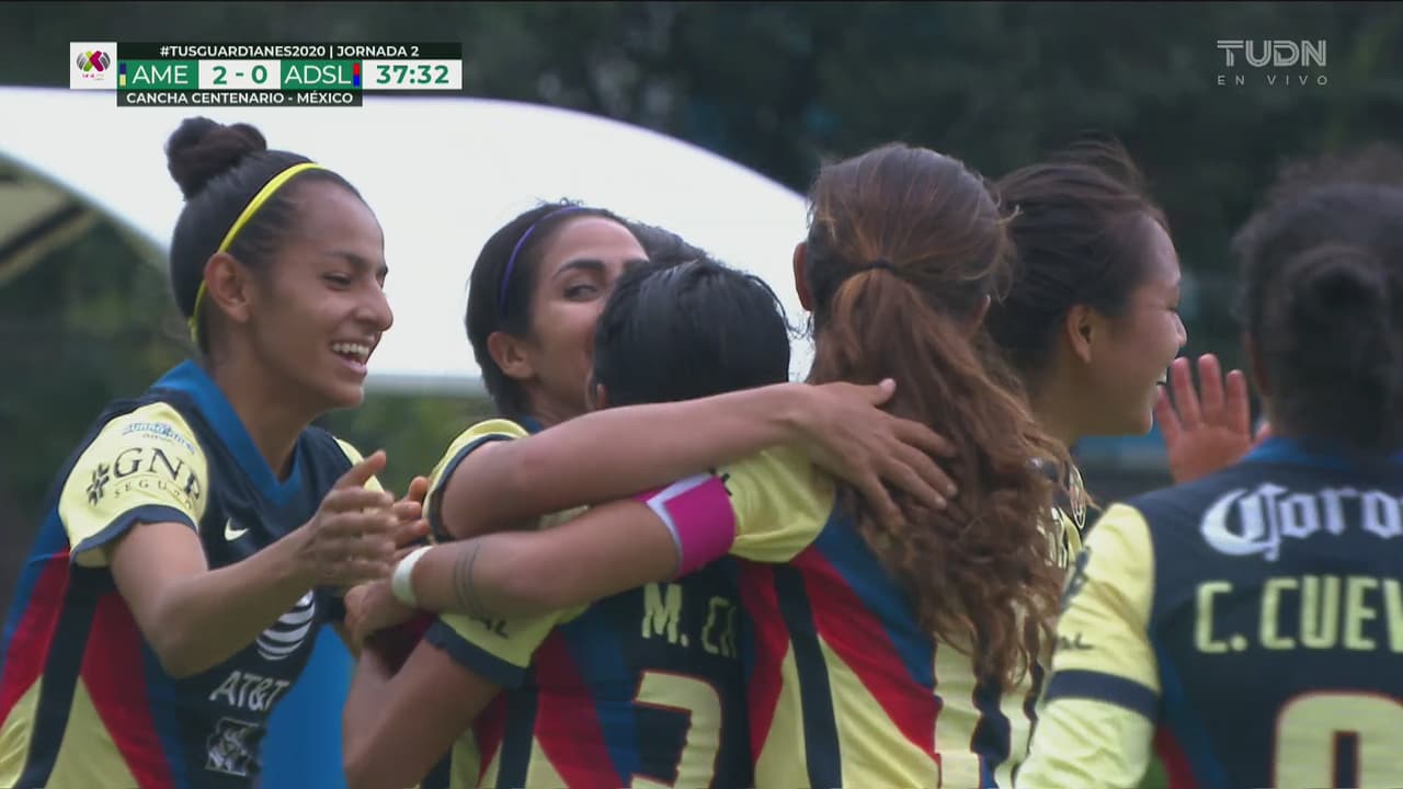 Al 37', Selene Valera, quien arrancó como lateral derecha por un tema de rotación en vez de Mónica Rodríguez, se estrenó como goleadora con las Águilas al 37' sacando un fuerte zapatazo cruzado después de que Hernández la habilitó con una jugada de fantasía.
