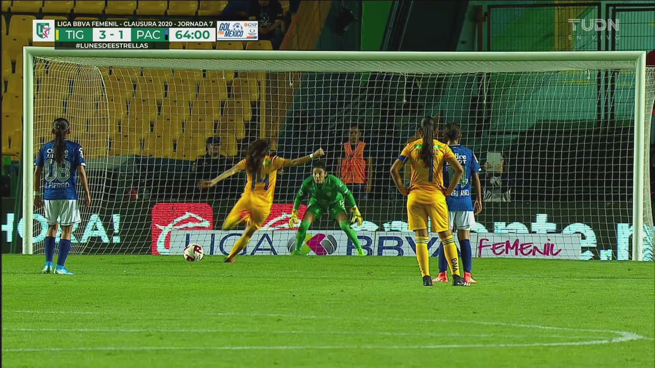 La misma Jacqueline, quien fue derribada en el área, cobró el disparo, la arquera tapó y en el contrarremate aumentó la ventaja.