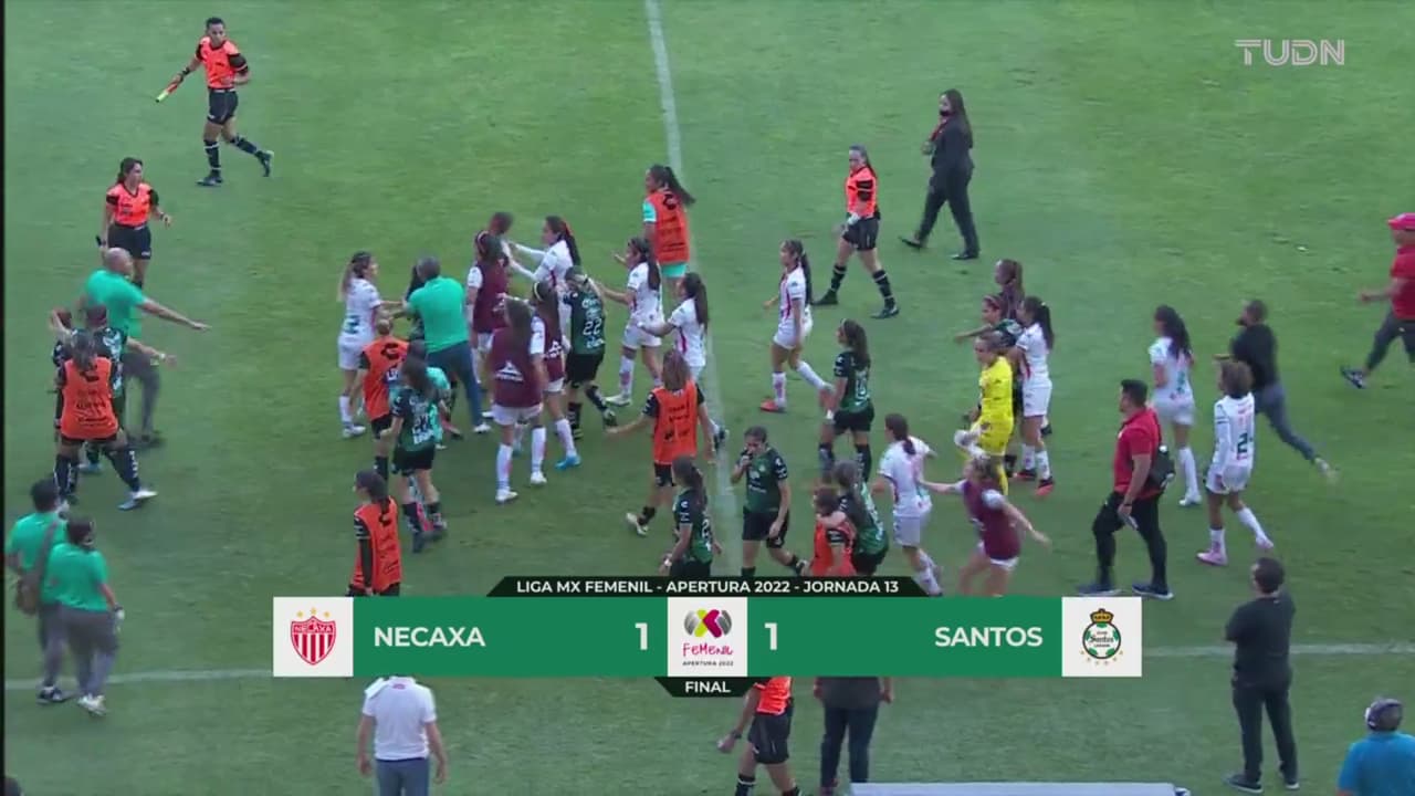 ¡Terminan calientes! Necaxa y Santos acaban el partido en bronca