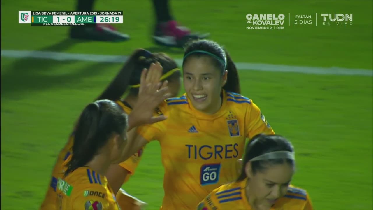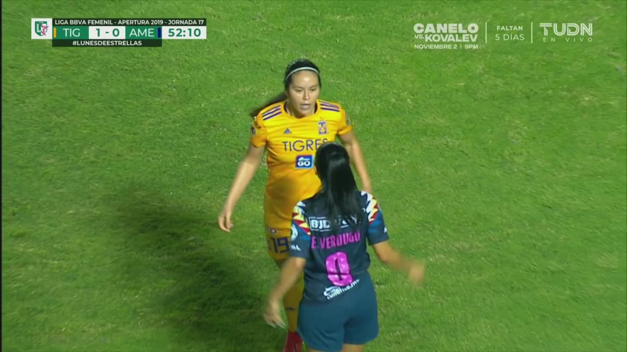 El juego se fue poco a poco inclinando a favor de Tigres, quien es buscaban constantemente inquietar a Jaidy Gutiérrez. América apretaba en la salida pero las felinas lograron imponer condiciones con el pasar de los minutos.