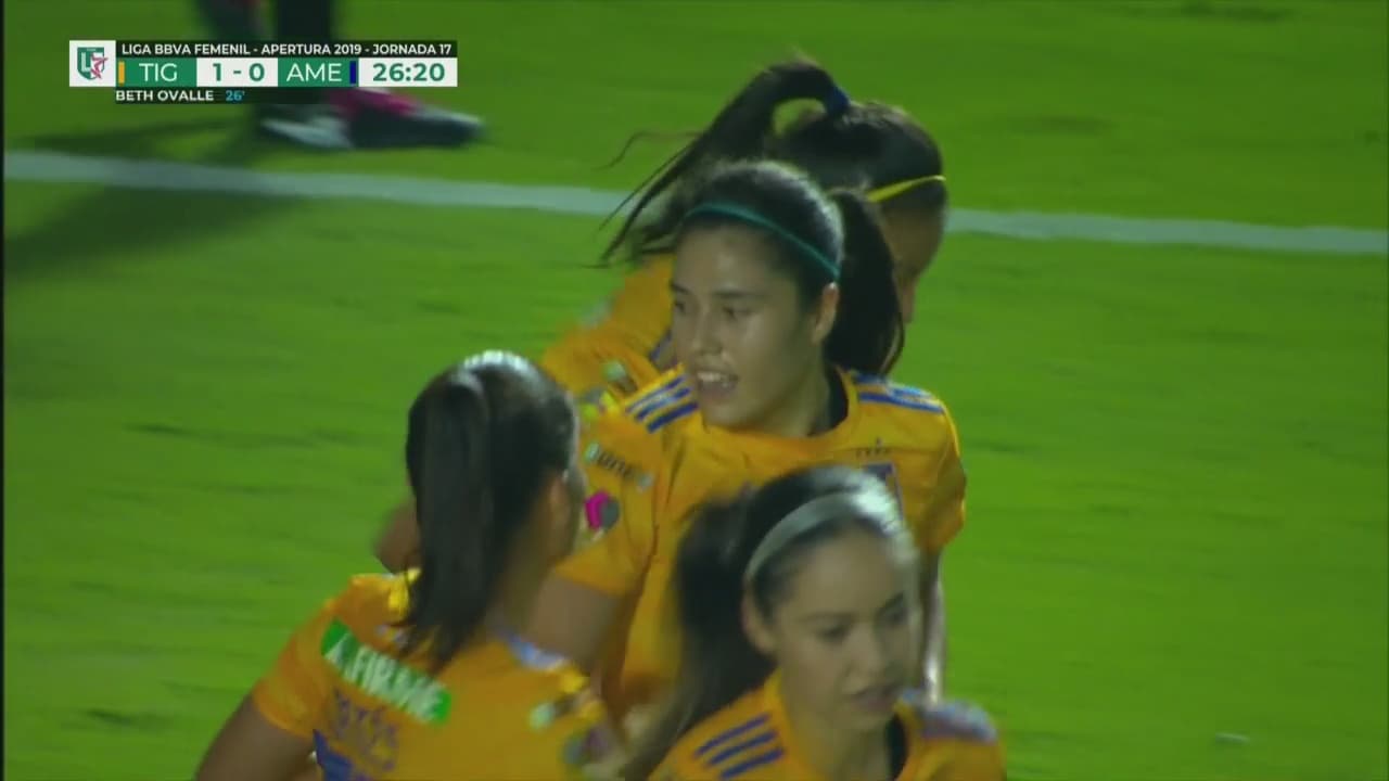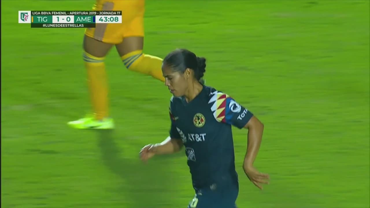 El juego se fue poco a poco inclinando a favor de Tigres, quien es buscaban constantemente inquietar a Jaidy Gutiérrez. América apretaba en la salida pero las felinas lograron imponer condiciones con el pasar de los minutos.