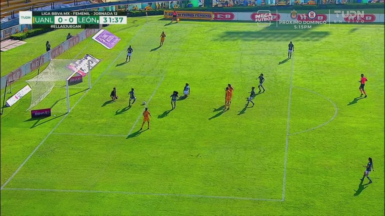 El primer lapso, como todo el partido, tuvo un solo equipo en la cancha, las Tigres con un ataque sólido y recurrente que tocó la puerta una y otra vez hasta que rompió el cerrojo de León.