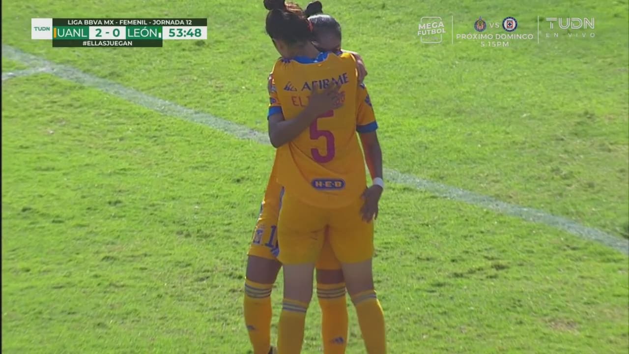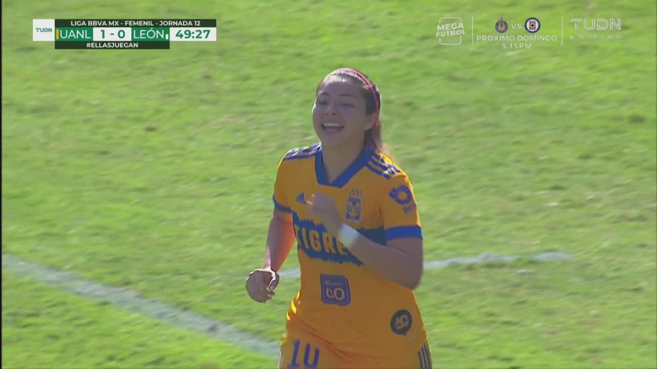 Tigres Femenil sigue como líder del torneo con 34 puntos en 12 jornadas luego de vencer a León en el Estadio Universitario con goles de .