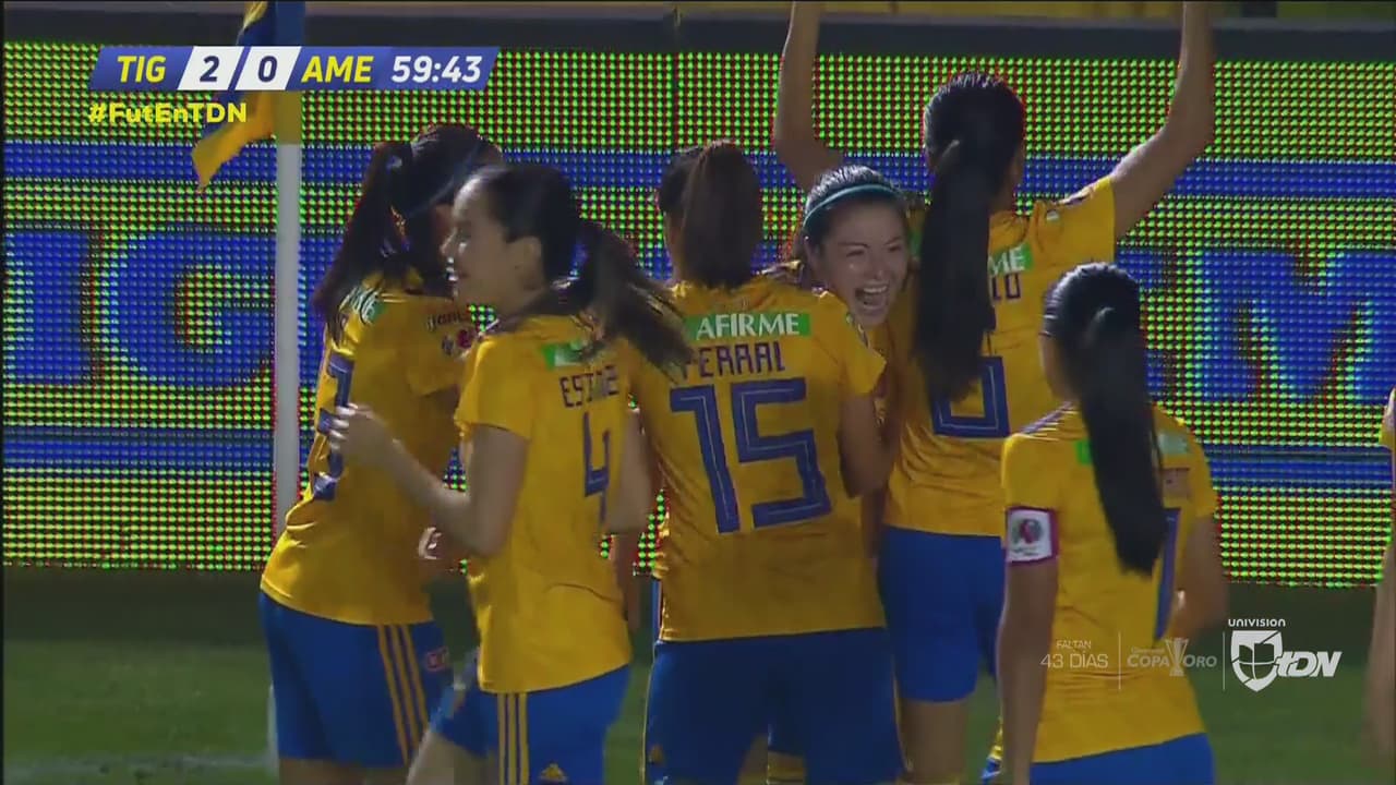En medio de la falta de creatividad de Tigres a partir de tres cuartas partes del campo, surgió la figura de Lizbeth Ovalle, quien prácticamente limpió el terreno de jugadoras azulcrema para intentar rematar a puerta en lo que pudo ser uno de los goles de la campaña; no obstante, la pelota no evitó tomar el rumbo desviado, aunque Katty Martínez estuvo atenta para que, una vez el esférico superara a la portera Santiago, rematar con la meta a placer a los 34’.