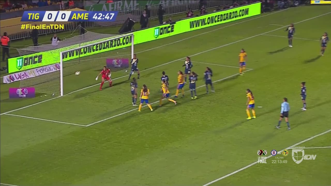¡Tigres toca la puerta de América! Nayeli busca portería, pero el esférico termina apenas por fuera