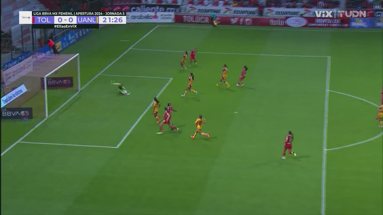 Toluca buscó sorprender en jugada a balón parado, pero la guardameta se quedó sin complicaciones con le balón de la escarlata.