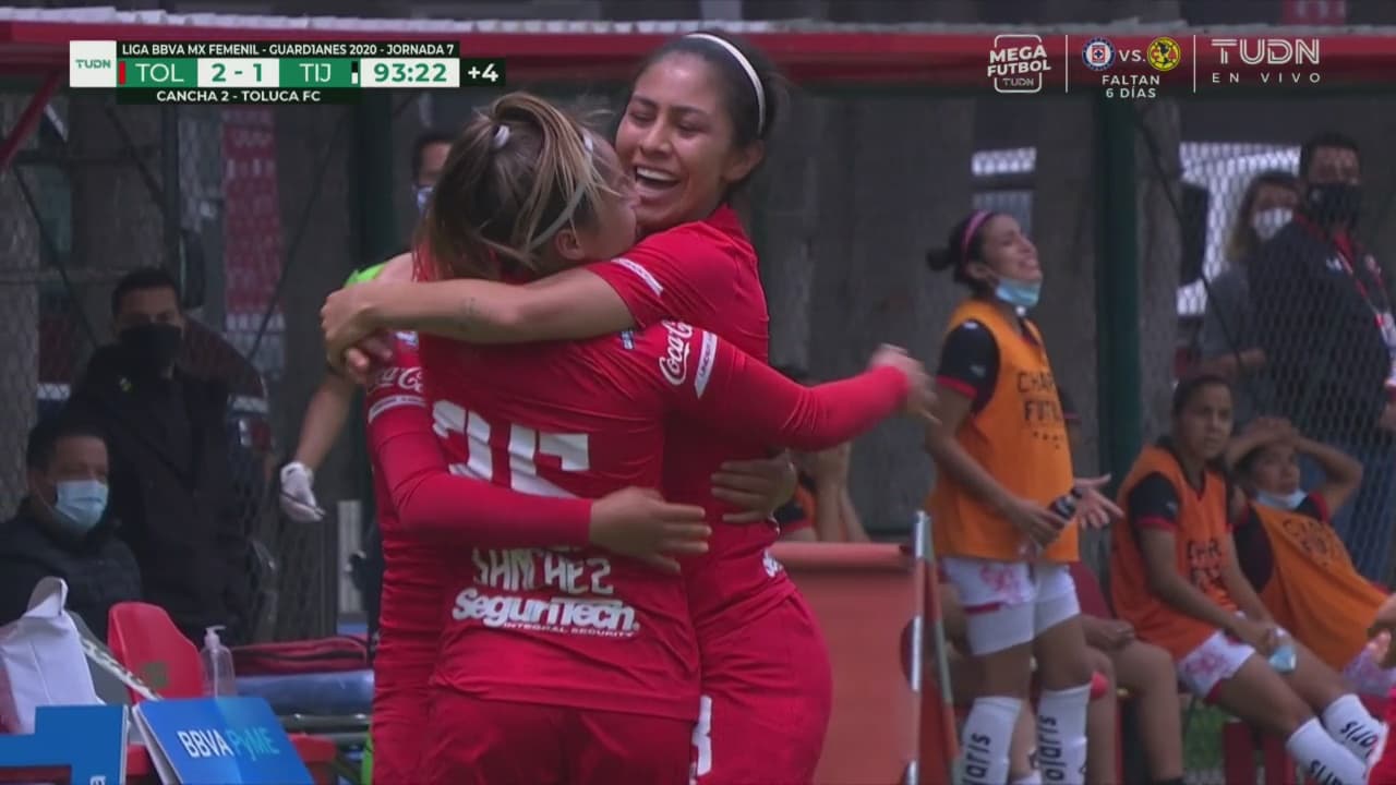 Toluca femenil se hizo fuerte en su cancha venciendo 2-1 a su similar de Xolos de Tijuana en la Jornada 7 de la Liga BBVA MX Femenil y en el proceso termina de hundir a las visitantes en la tabla general.