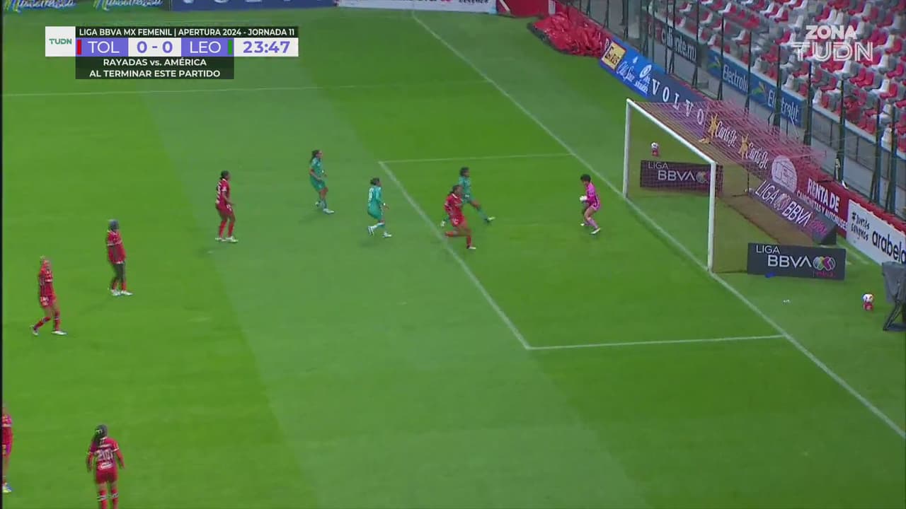 La primera ocurrió a los 53 minutos cuando Natalia Acuña, portera de León, tuvo una mala salida a querer cortar un pase filtrado a Brenda Woch que con un pequeño toque se quitó a la guardameta rival para anotar el primer gol.