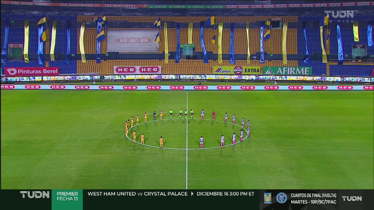 En honor a los caídos por el Covid-19 se realizó el acto antes del Tigres vs. Rayadas en el Volcán.