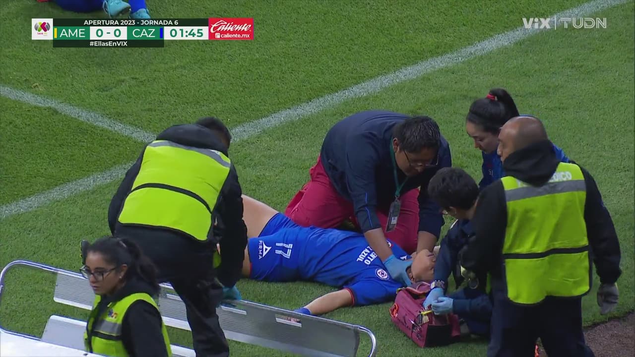 Ambas jugadoras del Cruz Azul no se hablan y sufren choque de cabezas. Flores sale en ambulancia, tras perder la noción.