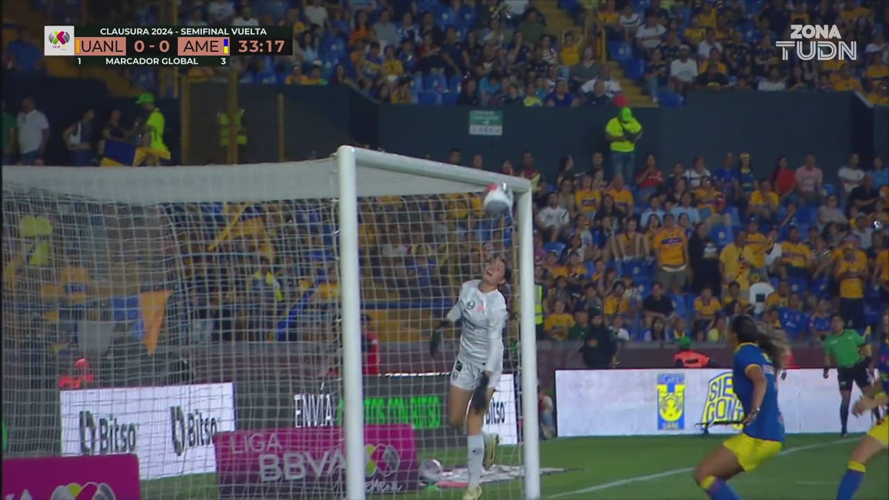 Tigres metió un centro cerrado por la derecha, la bola terminó paseando arriba de la portera con mucho peligro y al final salió.