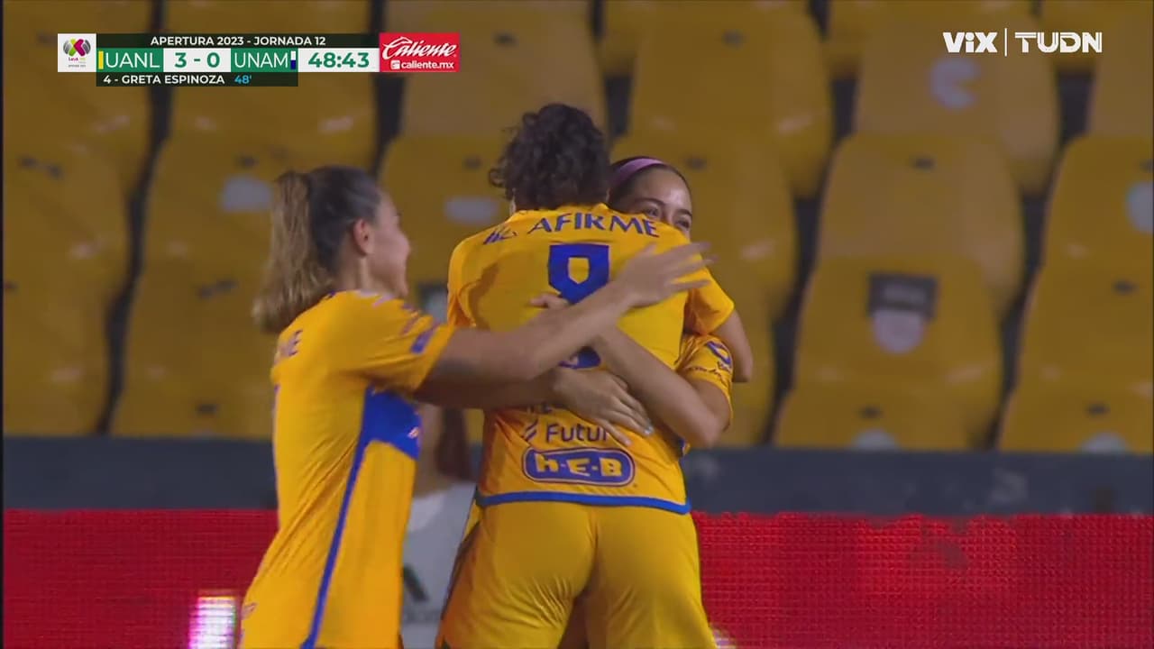 ¡Ya son tres! Greta Espinoza remata y marca el 3-0 de Tigres