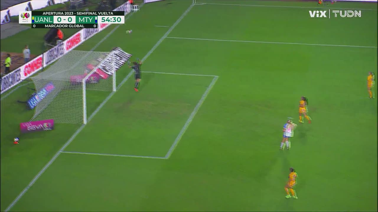 La ofensiva de Rayadas recibió sola y disparó, pero la bola salió llorando muy por encima del arco de Tigres.