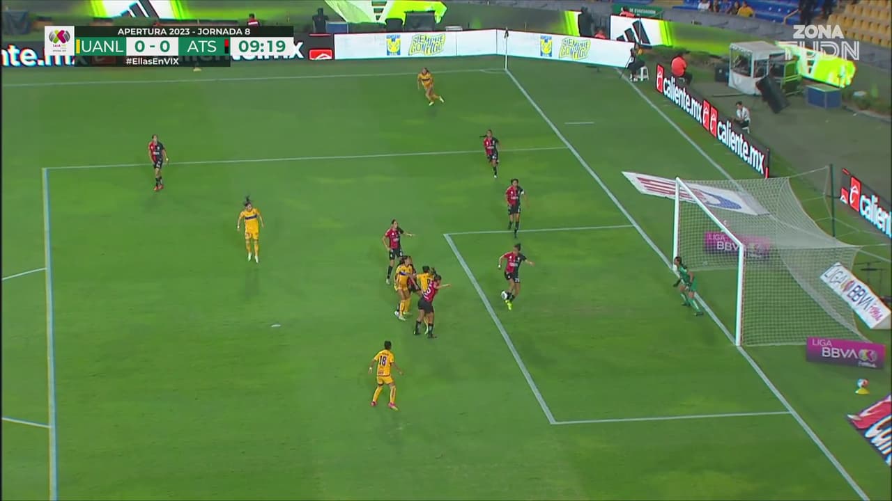 'La Maga' Ovalle metió buen servicio buscando a Stephany quien remató pero el balón se estrelló en los pies de Karla con taconazo defensivo.