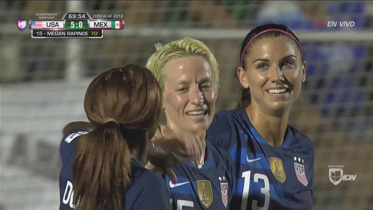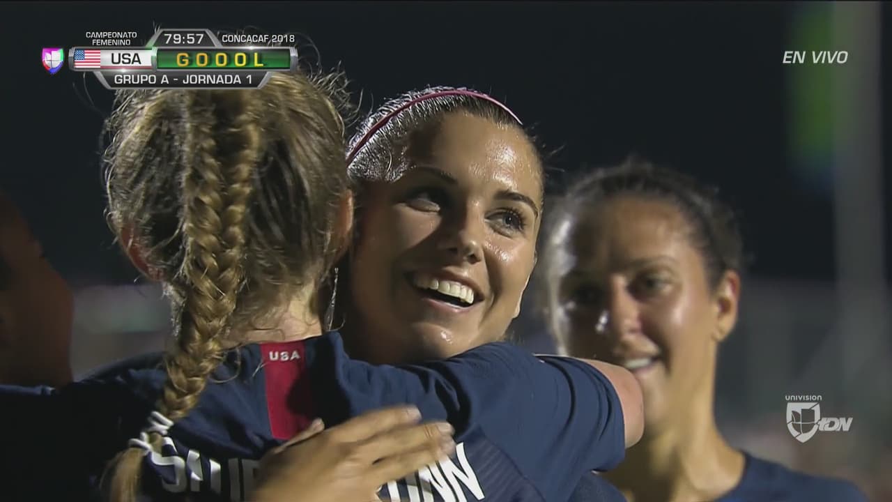 Instantes después apareció Alex Morgan para rematar de cabeza completamente sola en el área y así colocar el tercer tanto de las locales.